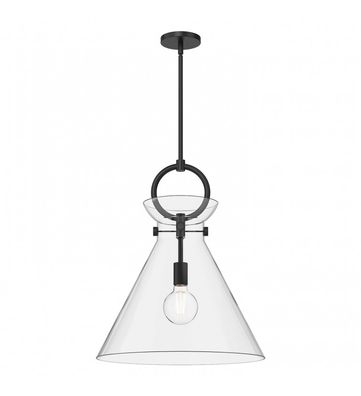 PD412518MBCL-Emerson 18-in Matte Black/Clear Glass 1 Light Pendant
