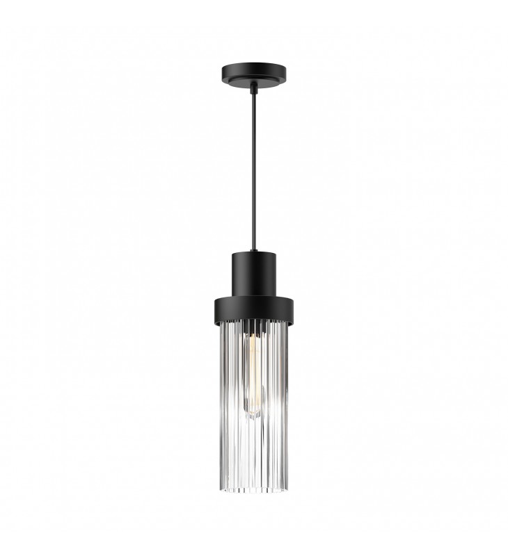 PD435605MBCR-Kent 5-in Clear Ribbed Glass/Matte Black 1 Light Pendant