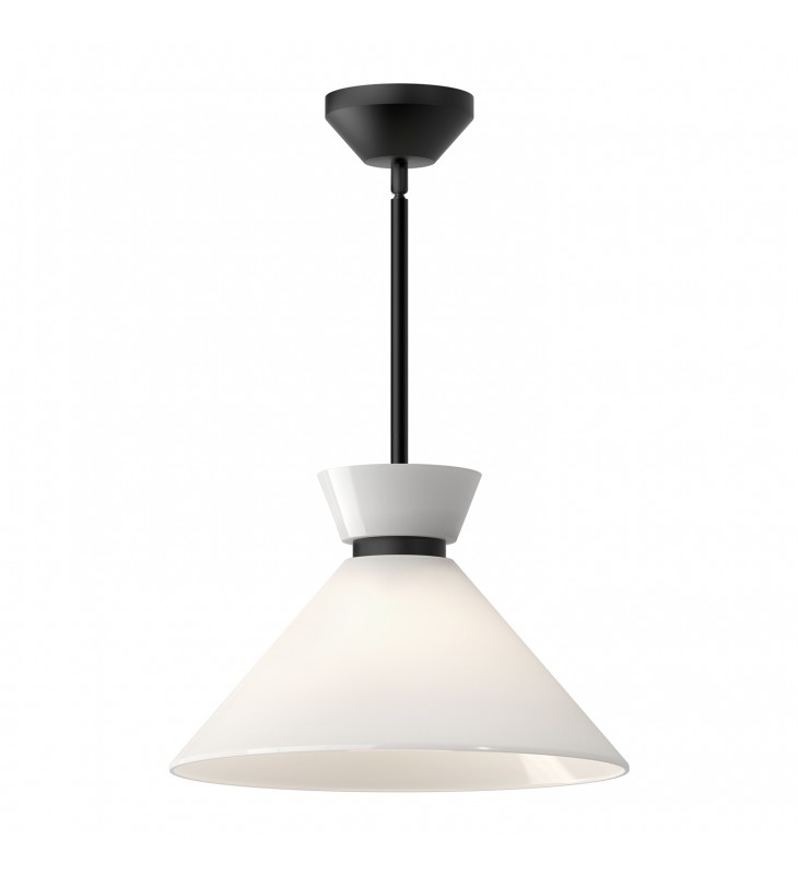 PD470514MBGO-Halston 14-in Glossy Opal Glass/Matte Black 1 Light Pendant