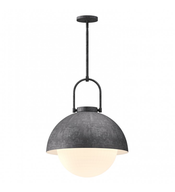 Classic metal shades and unexpected opal glass elements make up the Harper collection. The\norganically curved \"handle\" and shade of this collection is a modern take on classic pendants of\nthe mid-century era. Change the mood of these pendants entirely with the finishes available in\nthis collection, including the unique galvanized Steel.