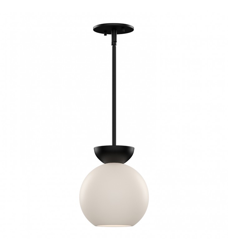 PD59708-BK/OP-Arcadia 8-in Black/Opal Glass 1 Light Pendant