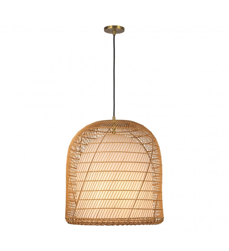 Bondi\'s bold, luminous forms draw inspiration from ocean sunsets, casting a soft glow and enchanting patterns that mimic the shifting sands and waves. When illuminated, the warm cast given by the natural rattan shade and glass diffuser creates a mesmerizing display, infusing your outdoor or indoor sanctuary with a sense of tranquility.