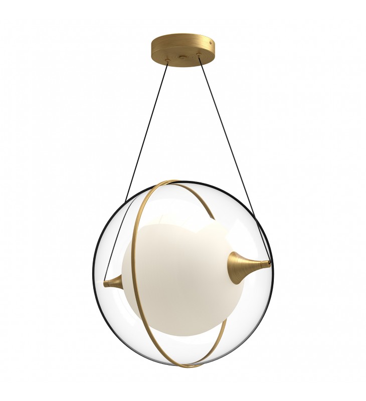 The celestial spheres of the Aries Collection create a one-of-a-kind space that\'s quite literally out of this world. This fantastic displace of floating light makes a superb statement piece in any style home. Each of the three incredible finishes offers completely adjustable lengths up to 120\". The gyroscope-like spheres can also be adjusted for optimal lighting from the interior frosted glass accents