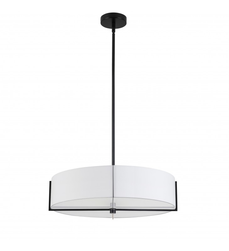 Dainolite Contemporary Preston Hanging in White Fabric for the Ceiling with 4 bulb, E26 socket base 60 Watts max Dimmable and UL Approved for Dry Location with a 1 Year Limited warranty. Great for Foyer/Hall, Living, Office rooms and Commercial use. Features include , Sloped Ceiling Adaptable, Height Adjustable LED Compatible