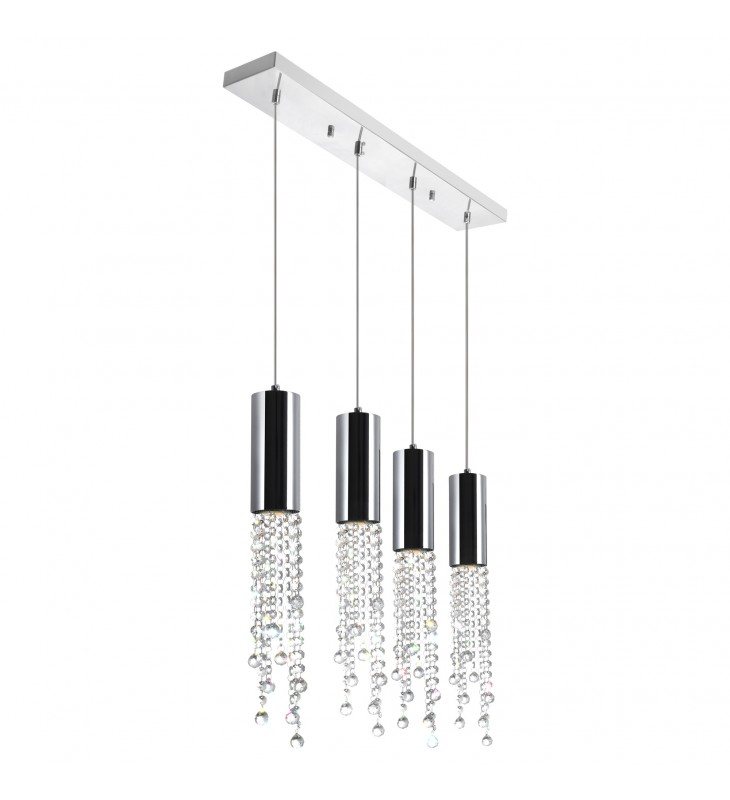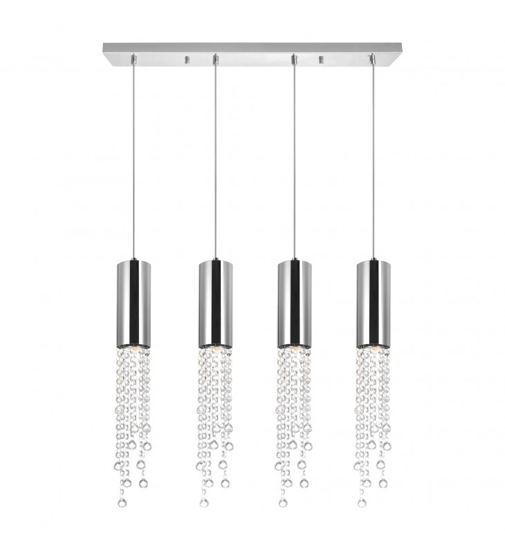 The bejeweled luminaire perfect for date nights at home. The Extended 4 Light Chandelier is a multi Light pendant perfect in your dining room or kitchen island. This light source is designed with four chrome-finished tubes suspended from a rectangular canopy in polished chrome. Each tube has some dangling clear crystal beads that shed a beautiful twinkling light. Now all you need to do is get dressed, put on some romantic music, and enjoy wine and dinner with your partner.