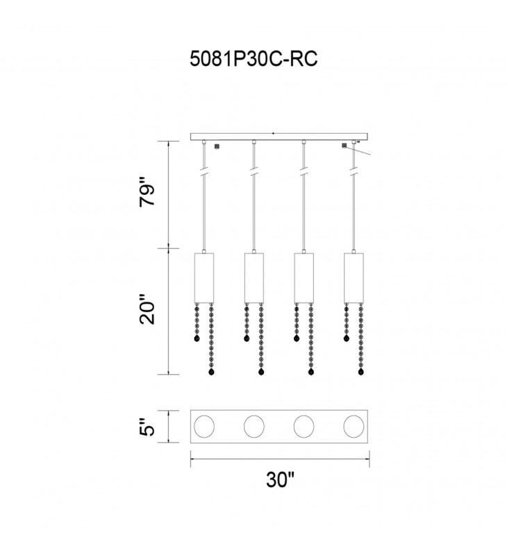 Extended 4 Light Multi Light Pendant With Chrome Finish (5081P30C-RC) - CWI