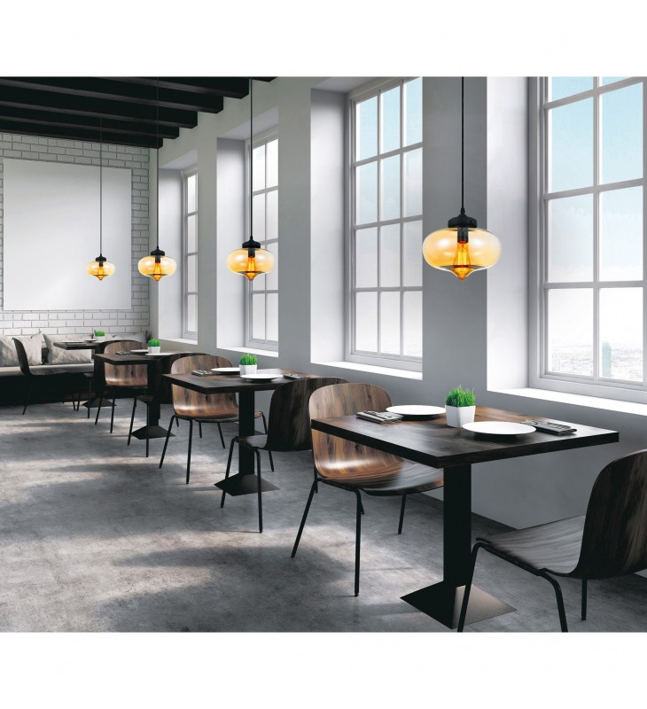 An artful light source, the Glass 11 inch Single Light Amber Pendant can make any room seem fancier and more pulled together. This fixture is designed with a black hardware and a shapely honey-colored glass pendant. The bulb is visible for a nostalgic look. This lighting option is perfect for modern spaces in need of a warmer and more intimate ambiance.