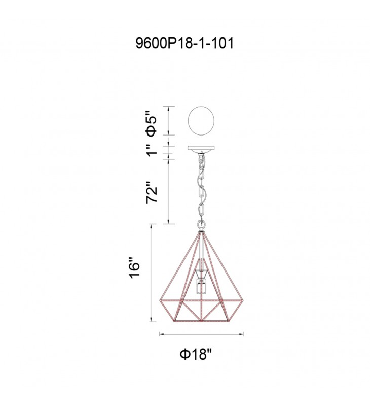 The Diamond 18 inch 1 Light Chandelier will suit most interior design applications. Use as dining room down pendant light, a unique source of light in a hallway, lighting plus visual interest for an all-white kitchen, or as ambient light provider for the home office. The refined silhouette and edgy appeal of this light fixture can give any space an architectural yet casual feel.