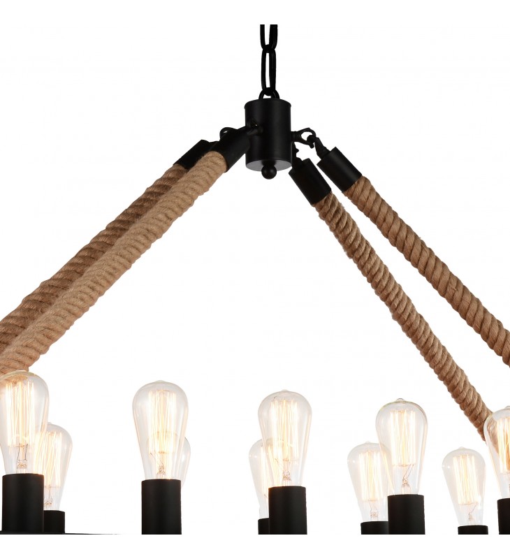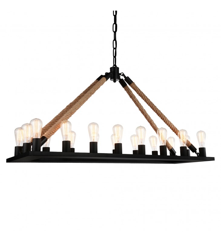 With a blend of rustic and sleek, the Ganges 18 Light Chandelier will fit nicely in modern farmhouse interiors. It features a flat rectangular metal frame in black finish held in place by rope cables. Eighteen bulbs shine a warm glow upwards and throughout the space. This lighting option is perfect for when you want to add a sense of warmth and a dose of character to your space all while maintaining minimalism.