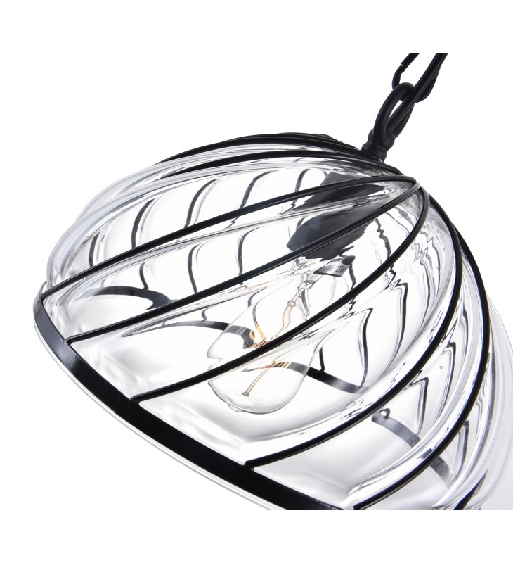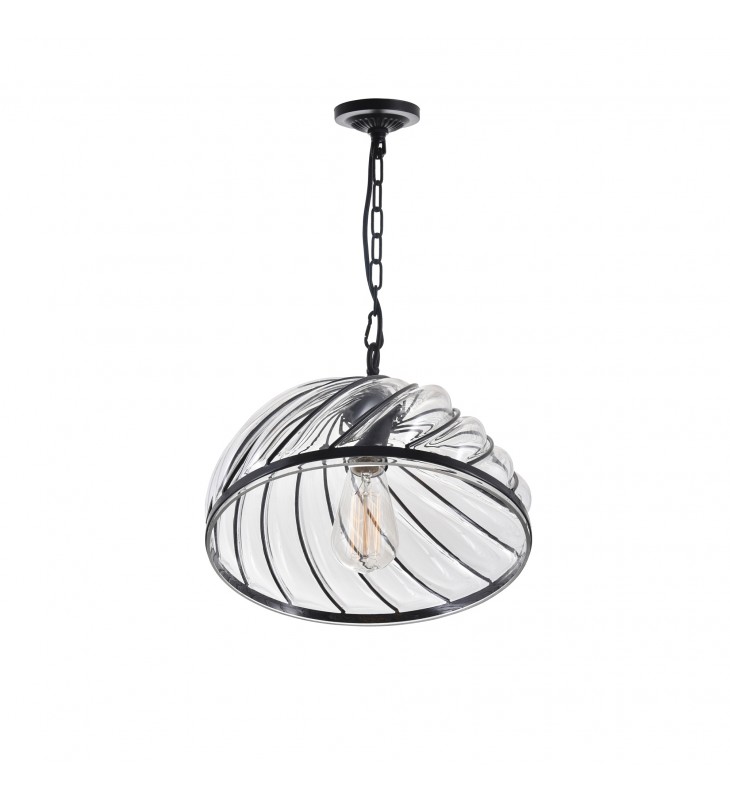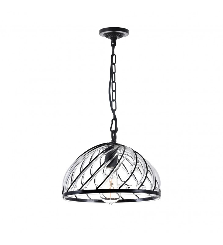 The Escot 1 Light Dome Pendant is a modern lighting option with a mixed-material shade. From a black canopy is a cable chain holding a dome-shaped glass with striped design and black trims. The clear glass will certainly provide you with ample light. Install it in multiples for a dramatic effect over your kitchen island.