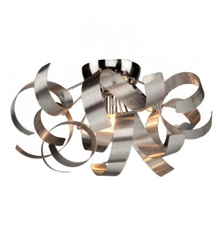 The \"Bel Air\" Collection, features a chrome interior cluster, and chrome plated arms that hold beautiful brushed aluminum swirls. Truly a stunning and unique design (also available in black with chrome interior). \nDue to the California Title 20 regulations, replaceable light bulbs will not be included with any product sold to customers in California.
