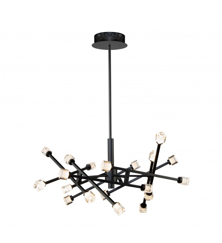 The \"Batton\" collection mid size pendant features glass cubes illuminated by LEDs. The frame\'s arms can be configured as desired and has a black finish (includes hang straight).