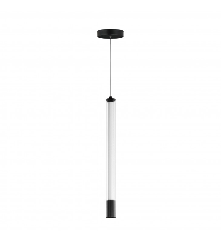 A central, cylinder diffuser of opal white acrylic diffuses LED lighting within a cavity of thin ribbed glass of various lengths. Both imaginative and functional, the bright pendants encase an additional down light recessed within a Polished Chrome, Naturally Aged Brass or Matte Black housing casting light downward.