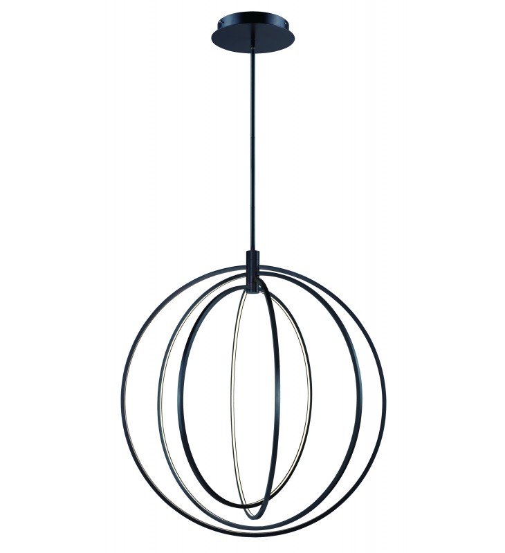 Four concentric rings strategically placed in orbit to form a spherical lighting design as unique as it is functional. With the internal placement of LED strips within either a Bronze or Brushed Pewter frame, the light moves both direct and indirect depending on its orientation.
