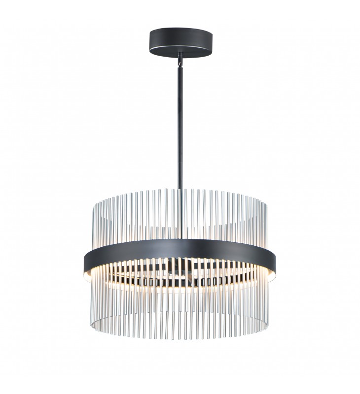 Wide bands of Matte Black metal supports an evenly spaced row of thin tubing finished in your choice of Satin Brass, Satin Nickel or a combination of the two. The stylish design is connected by WiZ that enables the lighting\'s White Ambiance between 2700-5000 Kelvin. Marvel at the ring\'s soft indirect lighting dispersion cast light both up and down and shine along the tubes aglow. Set daylight white options for concentration tasks and energize your body. Similarly take notice of the effect when setting a warmer tone at the end of the day or to add some ambiance.