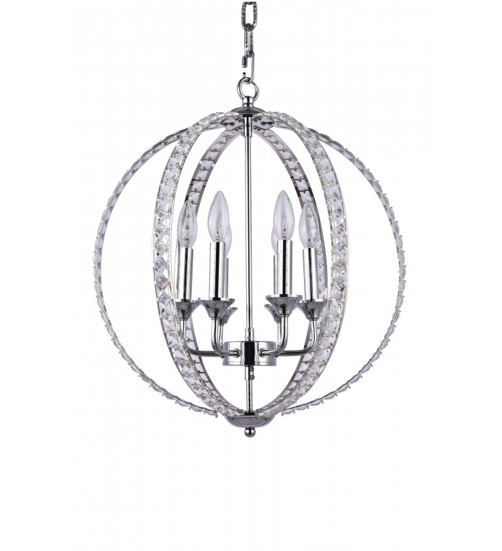 This unique chandelier is in a chrome finish. The frame is made out of stainless steel with clear crystal accents, adding even more modern. It can be used in any room.