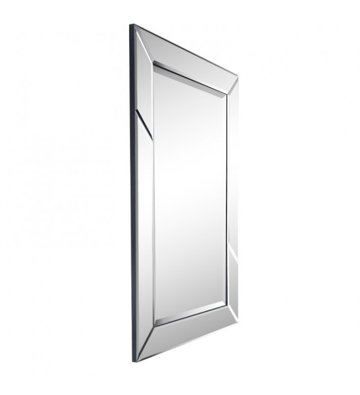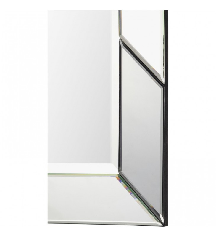 Art deco inspiration meets modern design with this rectangular wall mirror. Diagonal cuts along the edge of the frame make this all glass mirror an eye-catching decorative accent.