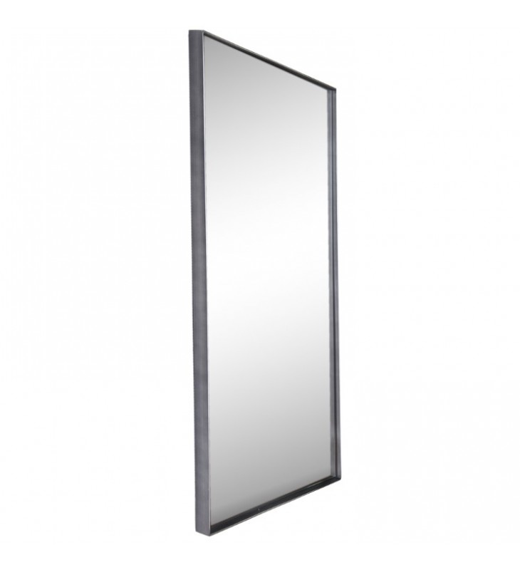 A fine charcoal gray metallic edge frames this rectangular wall mirror.