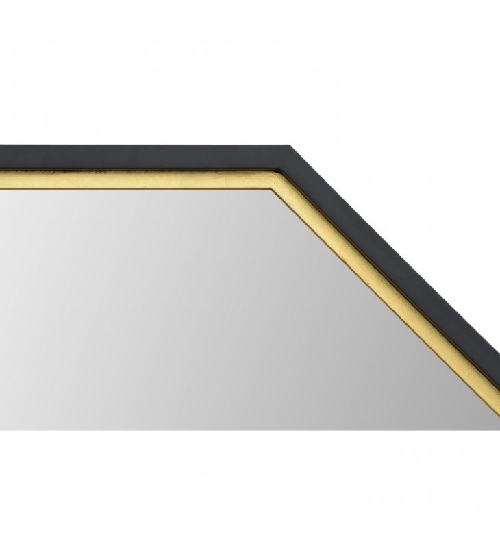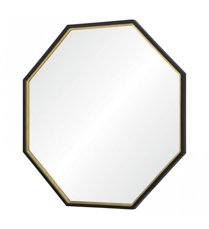 The eight-sided silhouette of this octagonal mirror sets a new standard for wall decoration. Gold leaf accents outline the interior of the black pine wood frame, drawing attention inward toward the geometric looking glass. The mirror?s angular profile looks extraordinary among rectangular and round fixtures and furnishings.
