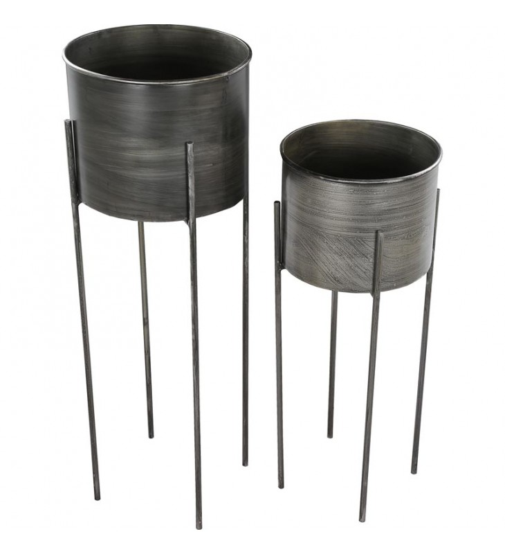 Set Of Two - Outdoor Planters - Iron - Brushed Grey Finish