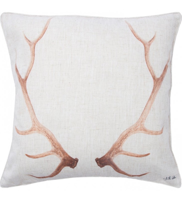 Compose a chic pillowscape on couches and beds with the traditional style of this decorative pillow. Printed in graphic detail on a square pillowcase, shades of brown illustrate the antlers of a majestic stag with a rustic design that turns an ordinary cushion into a captivating work of art. A sumptuous combination of duck feathers and down fill the standard pillow sham with enduring softness, offering comfortable cushioning for every seating or sleeping arrangement.