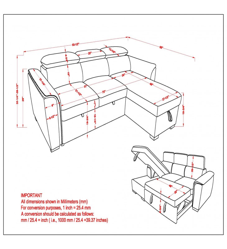 Dimensions : Dimensions: 93.5 x 66.5 x 32.25~39.5"H