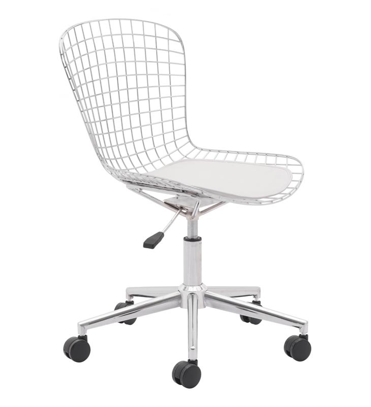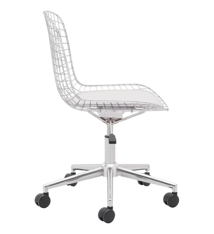 Wire Office Chair Chrome w/ White Cushion (100948) - Zuo Modern