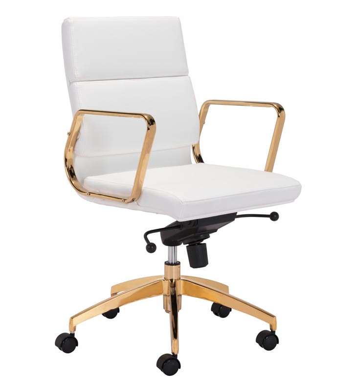 Scientist Low Back Office Chair Wht & Gd (101018) - Zuo Modern