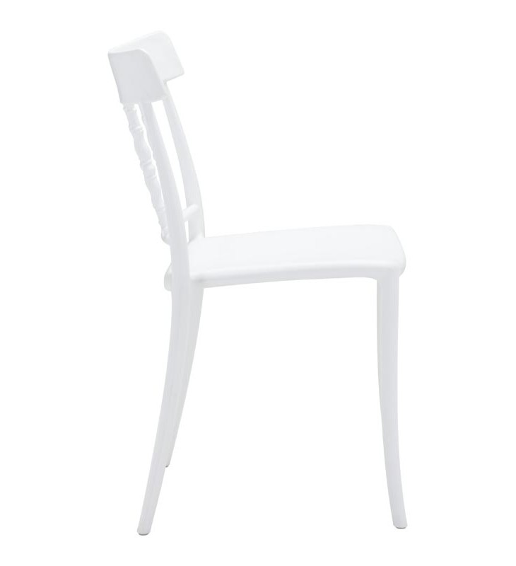 Contoured for comfort, this slim but shapely dining chair will let you linger outside for hours. We love the turned decorative supports on the open seat back that give it a vintage modern vibe. Its nicely weighted and stackable for easy storage on the off-season.