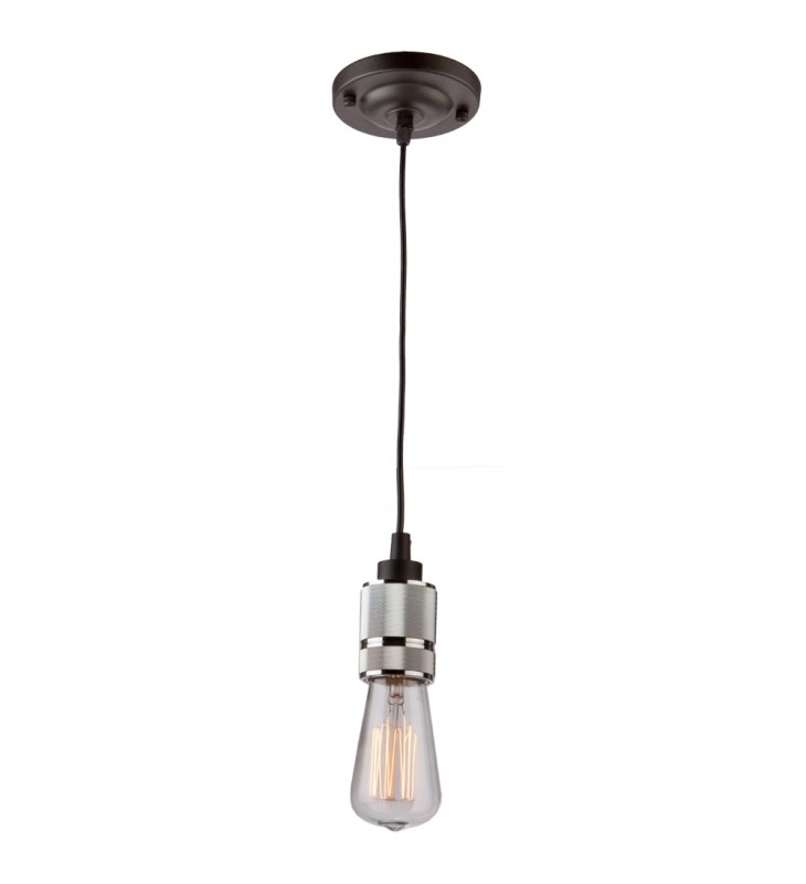 Precise mechanized machine sockets make the \"Jersey\" collection fit into that popular urban type design. Suspended by black, height adjustable wiring with black canopy. Chrome socket shown. Also available in Vintage brass finish.\n \n \n \n