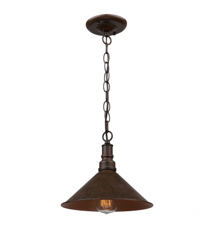 Putting a little fun into lighting, the \"Revival\" collection is a rustic plumbing design. This chain pendant is rust color.\n \n \n \n