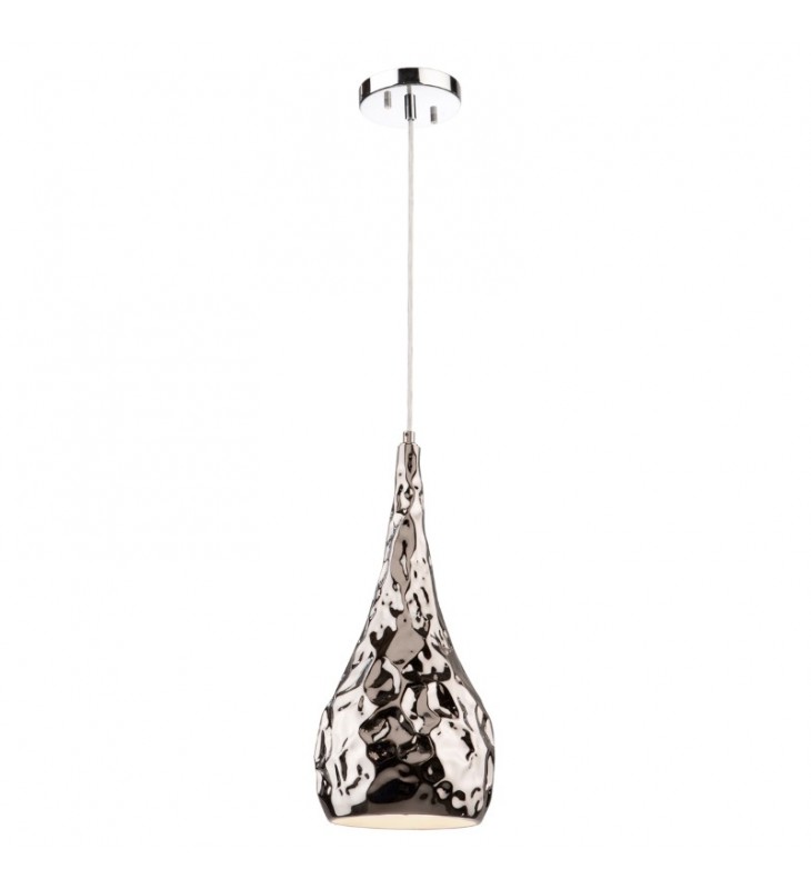 Named by design, the \"Forged Metal\" collection of pendants features a hammered metal shade. Shown in a chrome plated exterior with a painted white interior for maximum light reflection. Comes in multiple sizes and also available in a glossy white exterior.\n \n \n \n