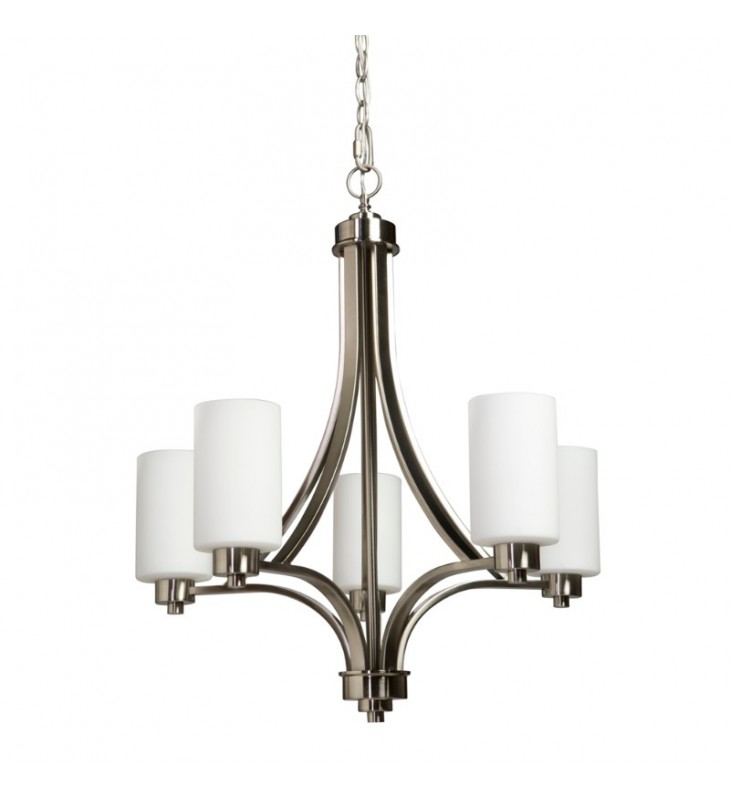 Parkdale 5 lite mini chandelier features its clean and simple design complimented with opal white glassware in polished nickel finish\n