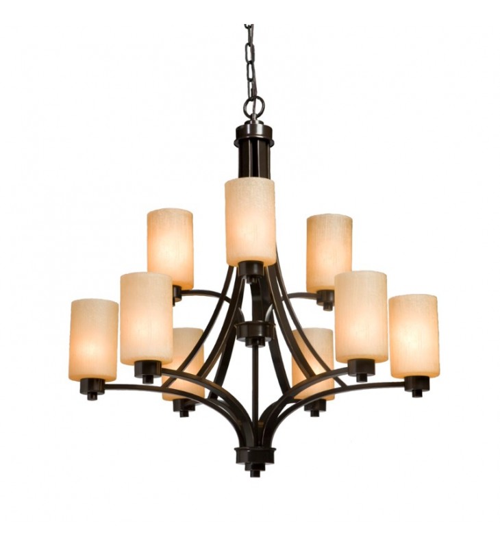 Parkdale 9 lite 2 tier chandelier features its clean and simple design complimented with amber glassware in rubbed oiled bronze finish\n