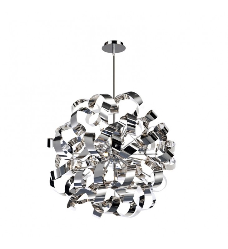 The \"Bel Air\" Collection, features a chrome interior cluster, and chrome plated arms that hold beautiful brushed aluminum swirls. Truly a stunning and unique design (also available in black with chrome interior). \nDue to the California Title 20 regulations, replaceable light bulbs will not be included with any product sold to customers in California.