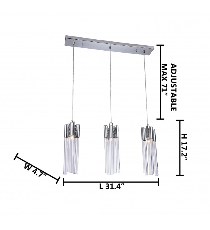 Product Feature : This ceiling fixture has a beautiful chrome metal frame. - This Fixture Comes With Clear Glass Tubing, Add Even More Modern - The Cord Is Adjustable In Height And Is Provided With 71" Of Hanging Wire.