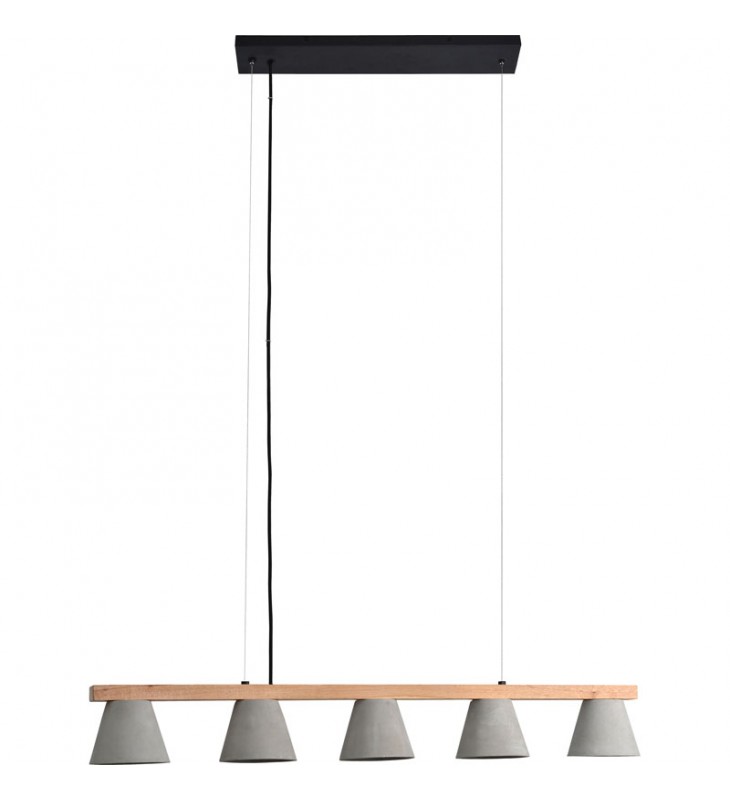 108\" Max. Cord Length - Ceiling Fixture - Steel - Textured - Black Powder Coated Finish - Grey Concrete - Rubber Wood - Natural Finish - Hardwired - Max. 40W - E26 Socket