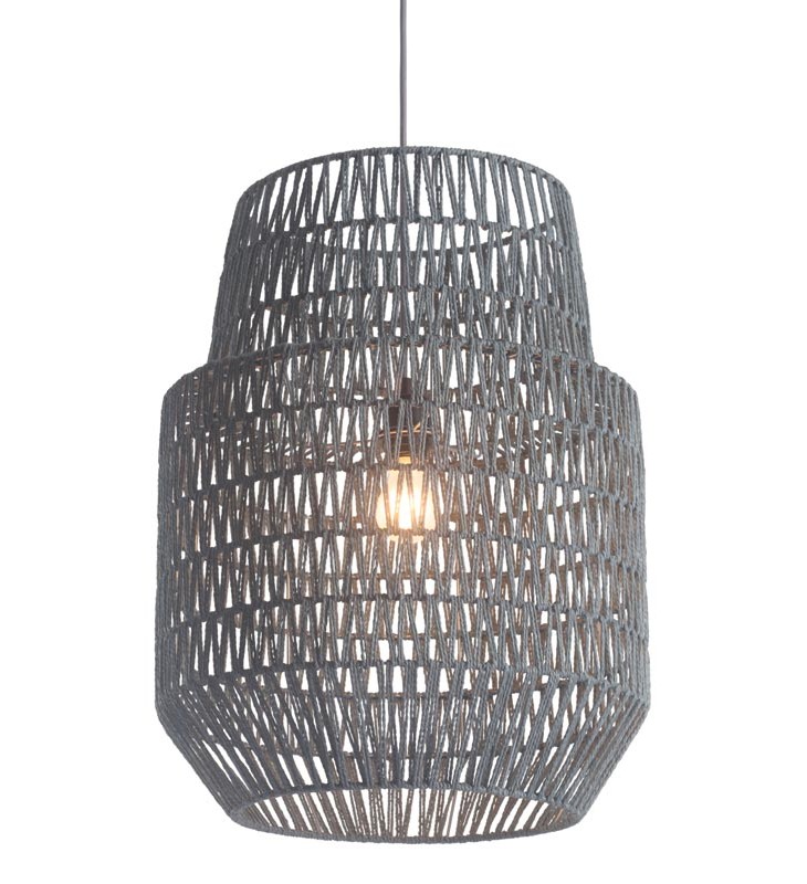 Daydream ceiling lamp has a large 2 level bell shaped shade. Shade material surrounds a metal architecture with an grey polyester woven thread zig zag pattern woven throughout pattern creating a soft, see through shade. Install in kitchens or day rooms, group over living and dining rooms and perfect for a softer look to your modern design. Bulbs not included. Bulbs sold seperately, Max Watt 60 W, Size E26, Type A19. UL approved and listed.
