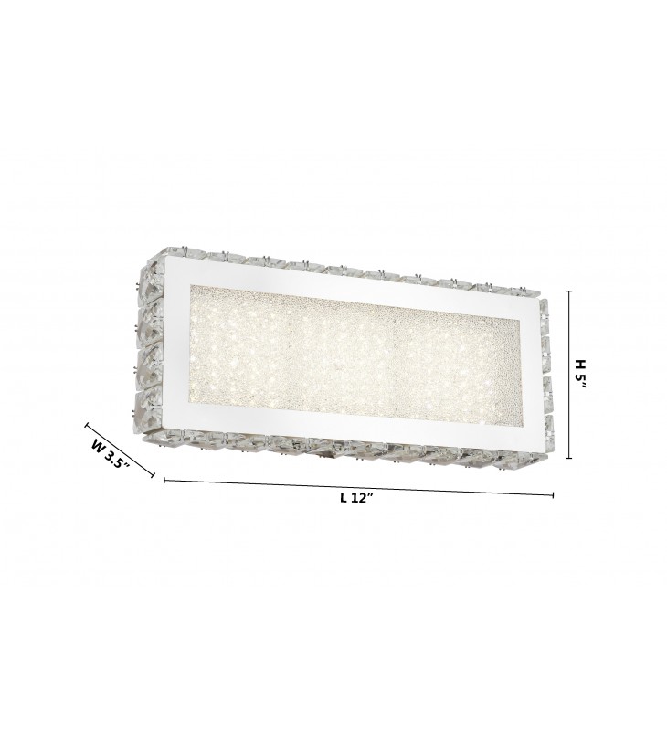 This exquisite LED wall sconce is in a chrome finish. The frame is made out of stainless steel, and crystal accents in clear are surrounded the frame, adding even more modern.