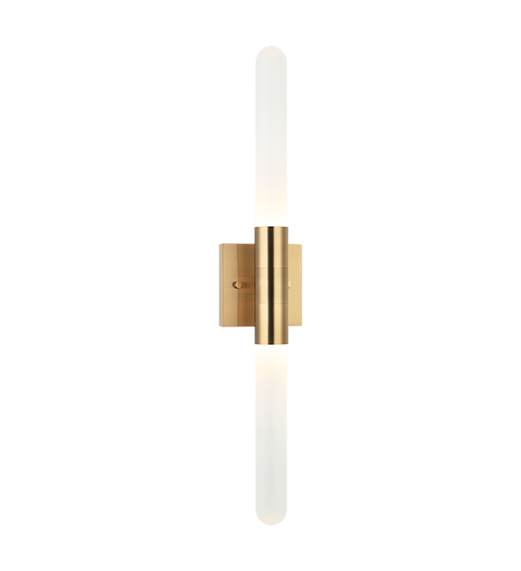 Aydin is a Modern LED with cylindrical tube and frosted glass shade. Available in either Aged Gold Brass or Matte Black finish.