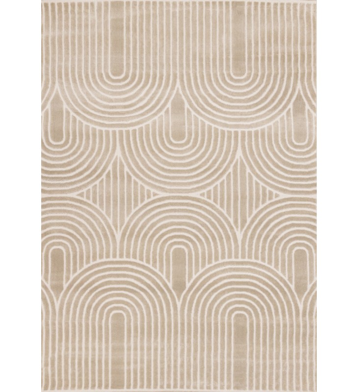 (H632/0151 160230)-Leo Cream Beige Modern Geometric Arches Pattern Rug, 5'3" x 7'7"-(Kalora)
