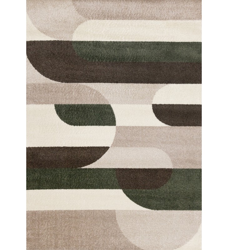 (H823/1313 160230)-Malibu Taupe Green Cream Striped Curvy Geometric Design Rug, 5'3" x 7'7"-(Kalora)