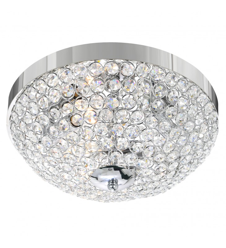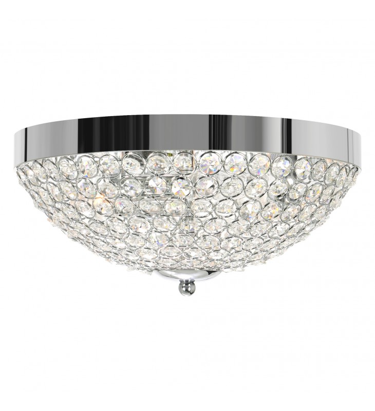 The Globe 3 Light Flush Mount has a sparkling glamour that will elevate your space straight to the A-list. It captures the luxury aesthetic with its crystal covered bowl-shaped shade. The chrome-finished ceiling plate completes the glitzy look of this piece.