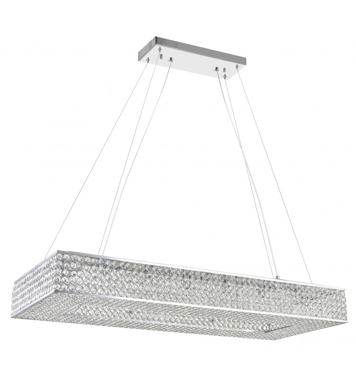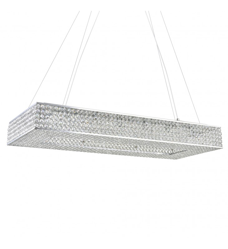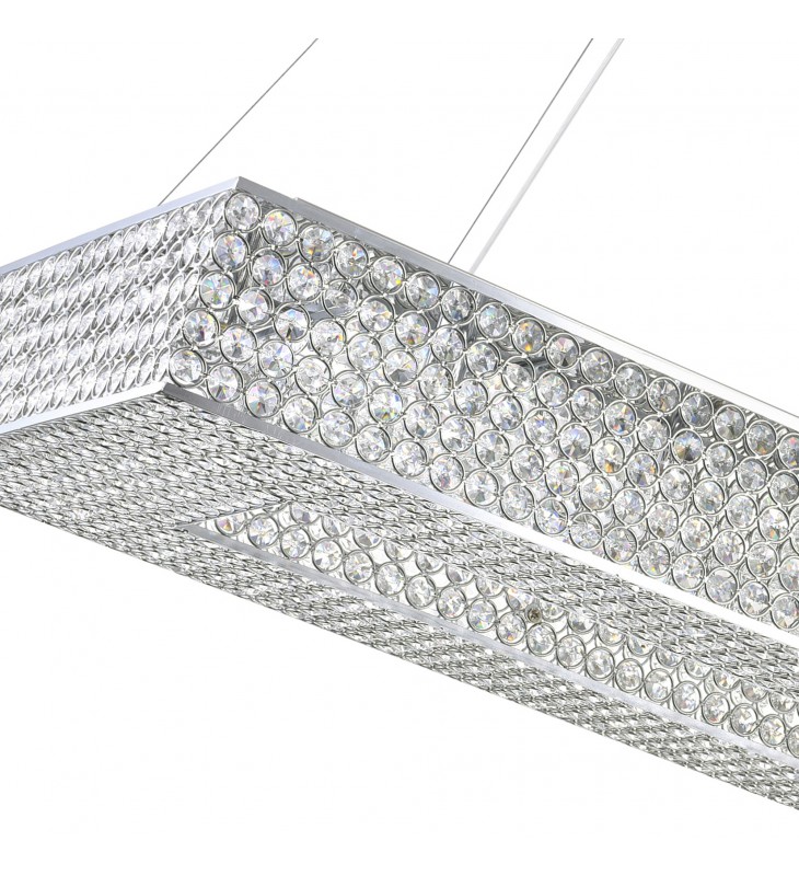 Get mesmerized by the sparkling beauty of Dannie 16 Light Chandelier. This striking light fixture is bound to bring a feminine touch and a dose of luxury to your space. it features a rectangular frame with chrome rims and lattice pattern completely covered in clear crystals. Sitting inside are bulbs that provide light radiated elegantly by the crystal beads.