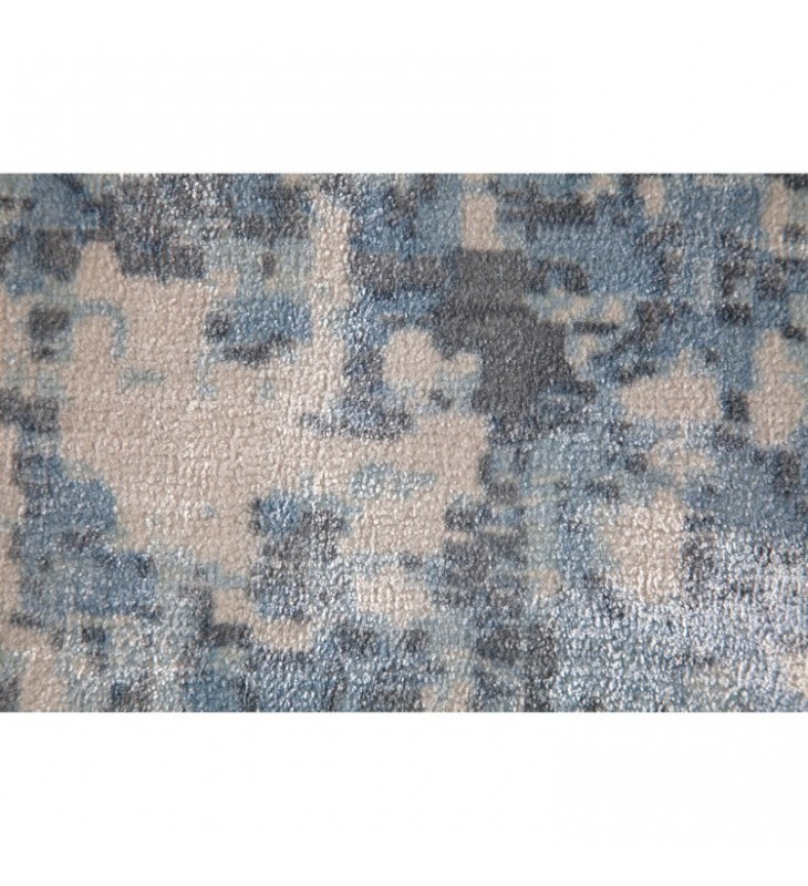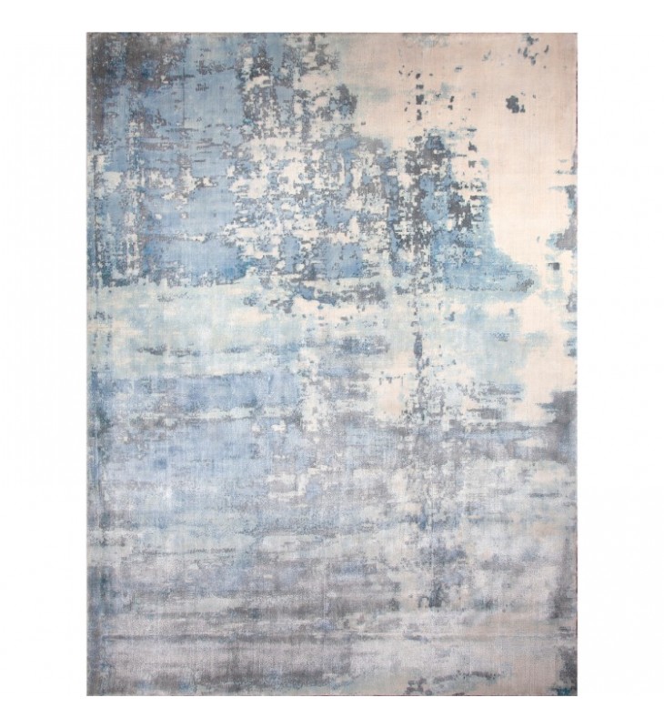 Contemporary style and a calming color palette make this decorative area rug a must have for modern floors. The abstract rug design features cool gray and aqua blue tones that emerge above the ivory field like dappled watercolors on canvas. Handwoven from faux silk and super soft synthetic threads, the dense rug pile features a subtle shimmer that looks and feels superb on interior floors everywhere.
