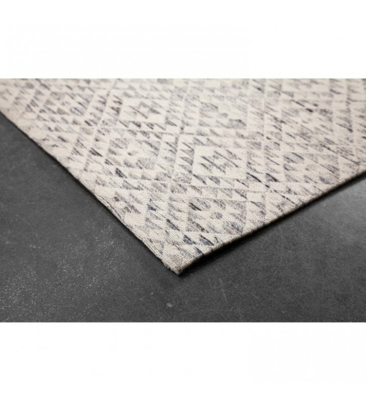 Fill interior floors with the free-spirited style of this traditional area rug. Hand-woven construction pairs natural woolen yarns with super soft synthetic fibers to create a boho-inspired blue and beige floorcovering with enduring strength and softness. The striated indigo background brings a lovely layer of texture behind the repeating diamond pattern of tribal motifs, like faded denim on a favorite pair of blue jeans.