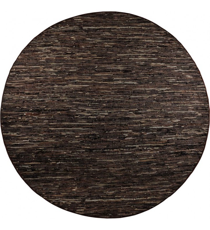 Flat Woven - Dark Brown - Cotton - Wool & Bovine Leather - Made In India