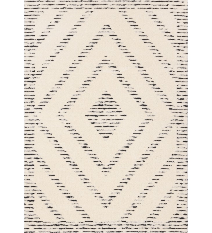 (1355/ZD26 160230)-Talia Cream Black Striped Diamond Rug Design, 5'3" x 7'7"-(Kalora)