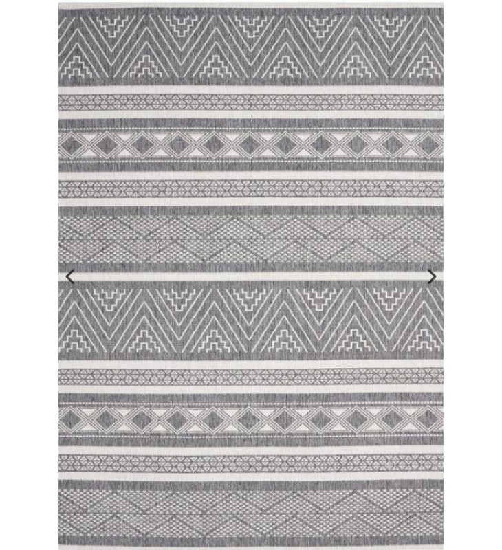 (5316/0010 240340)-Bristol Reversible Grey White Striped Pattern Outdoor Rug, 7'10" x 11'2"-(Kalora)