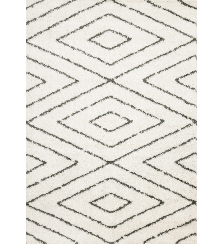 (E884/1121 240320)-Pascal Cream Green Geometric Shag Rug, 7'10" x 10'6"-(Kalora)